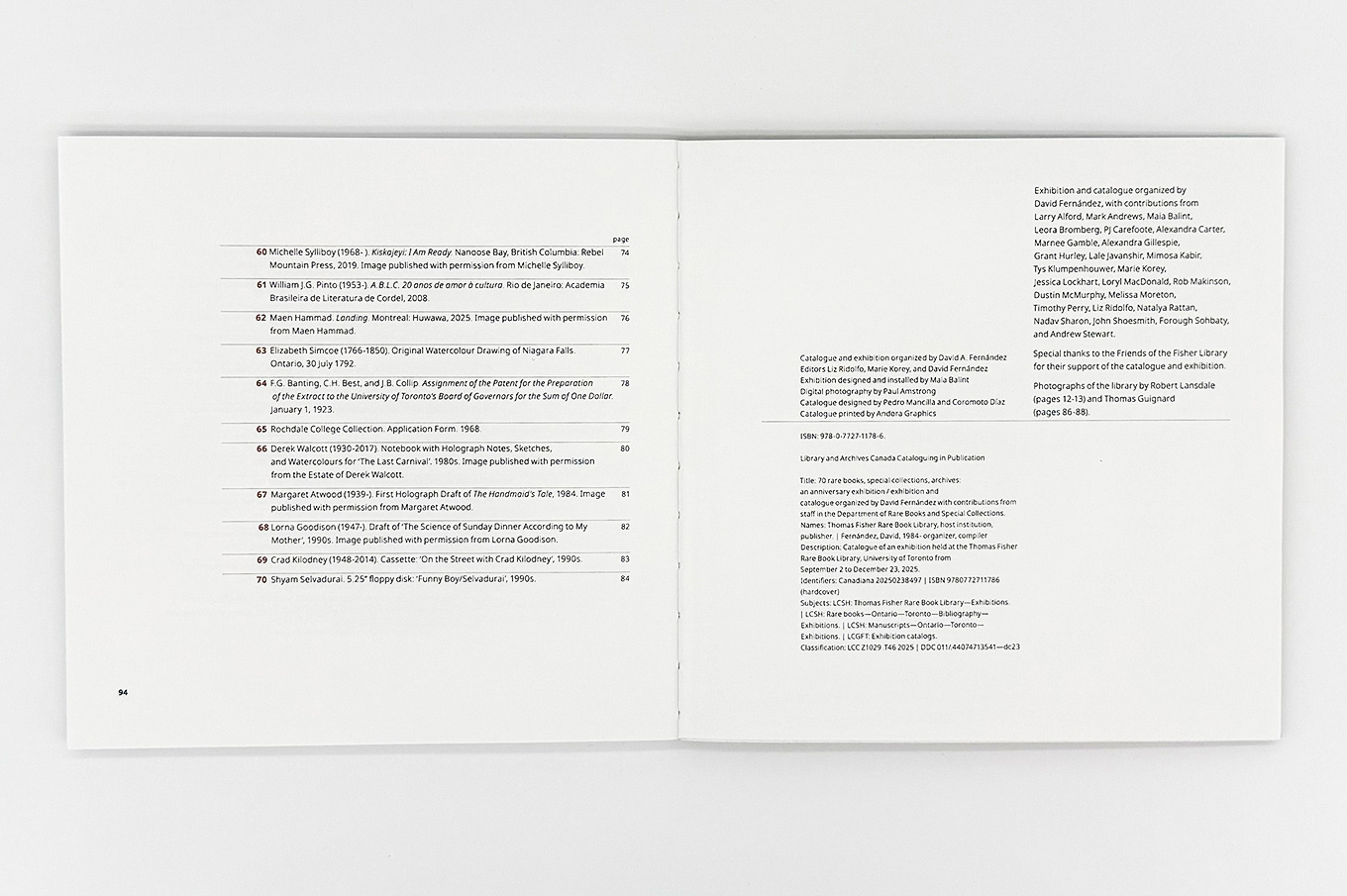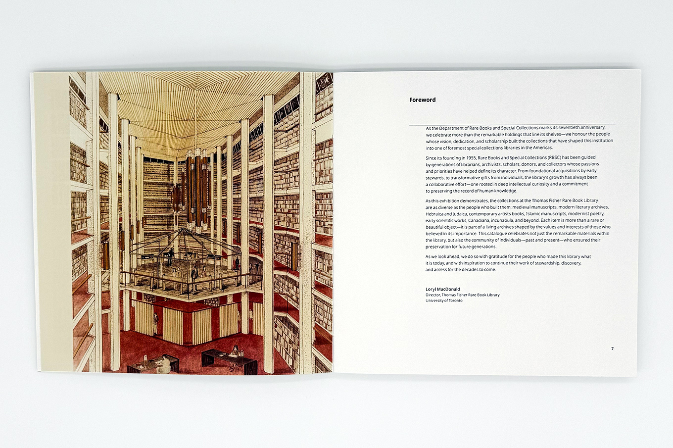 70 Rare Books, Special Collections, Archives: An Anniversary Exhibition is a catalogue inspired by the brutalist architecture of the Thomas Fisher Rare Book Library. It celebrates moments of discovery and learning through a selection of seventy items from the library’s collections, each recently used in research, teaching, and learning, highlighting the depth and diversity of its holdings.