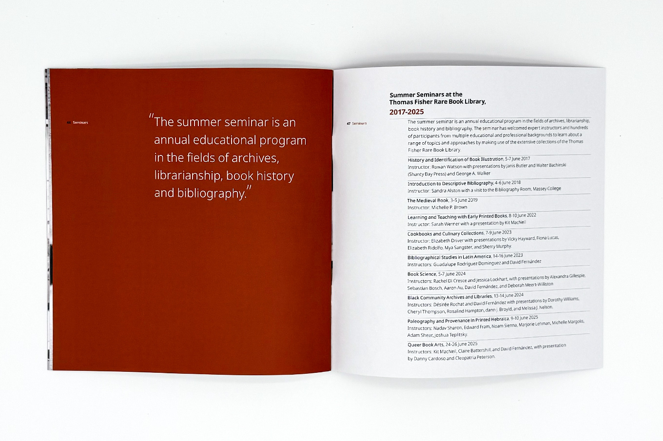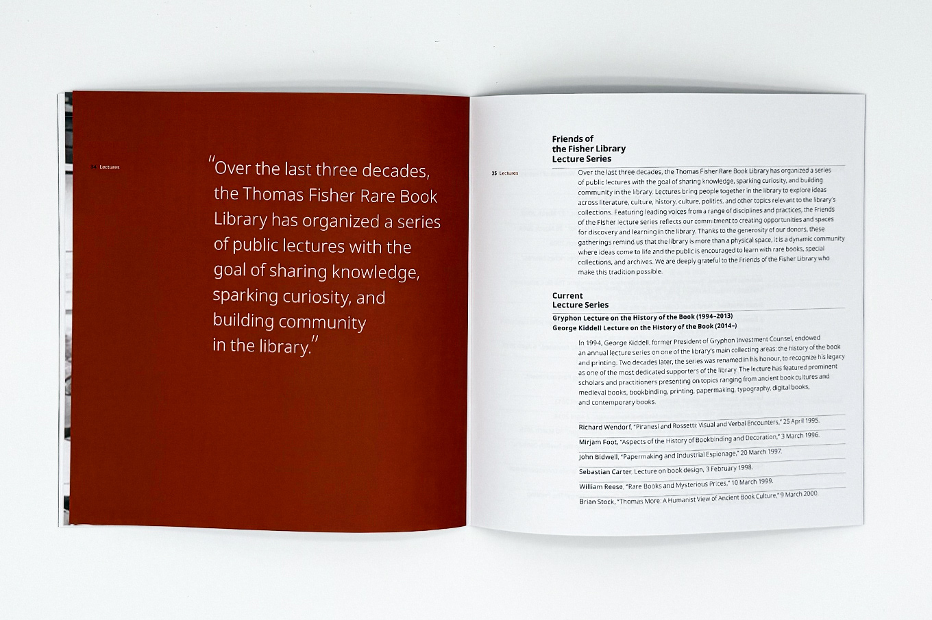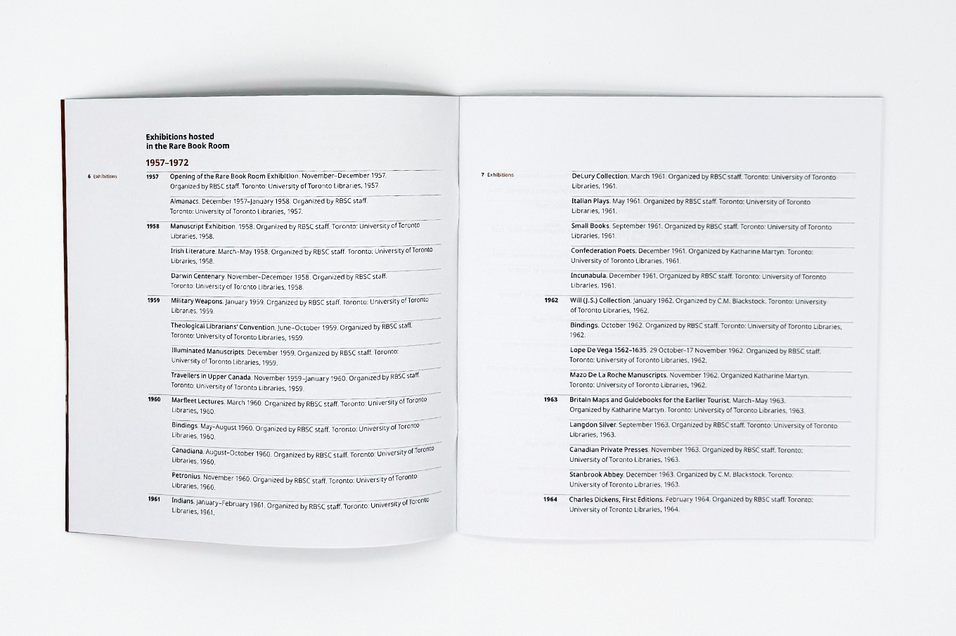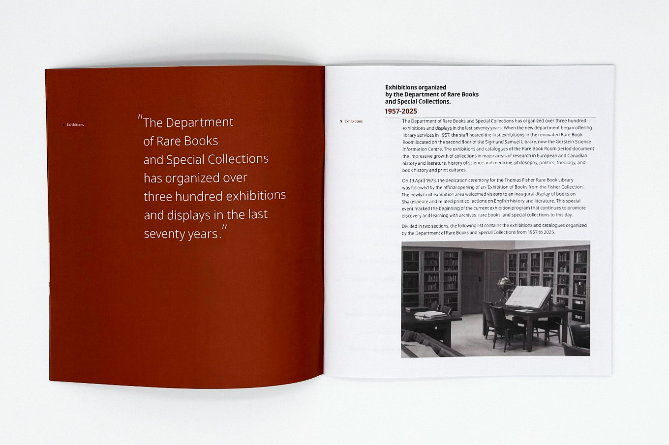 This booklet lists the Exhibitions, Lectures, and Seminars organized by the Department of Rare Books and Special Collections in the last 70 years.