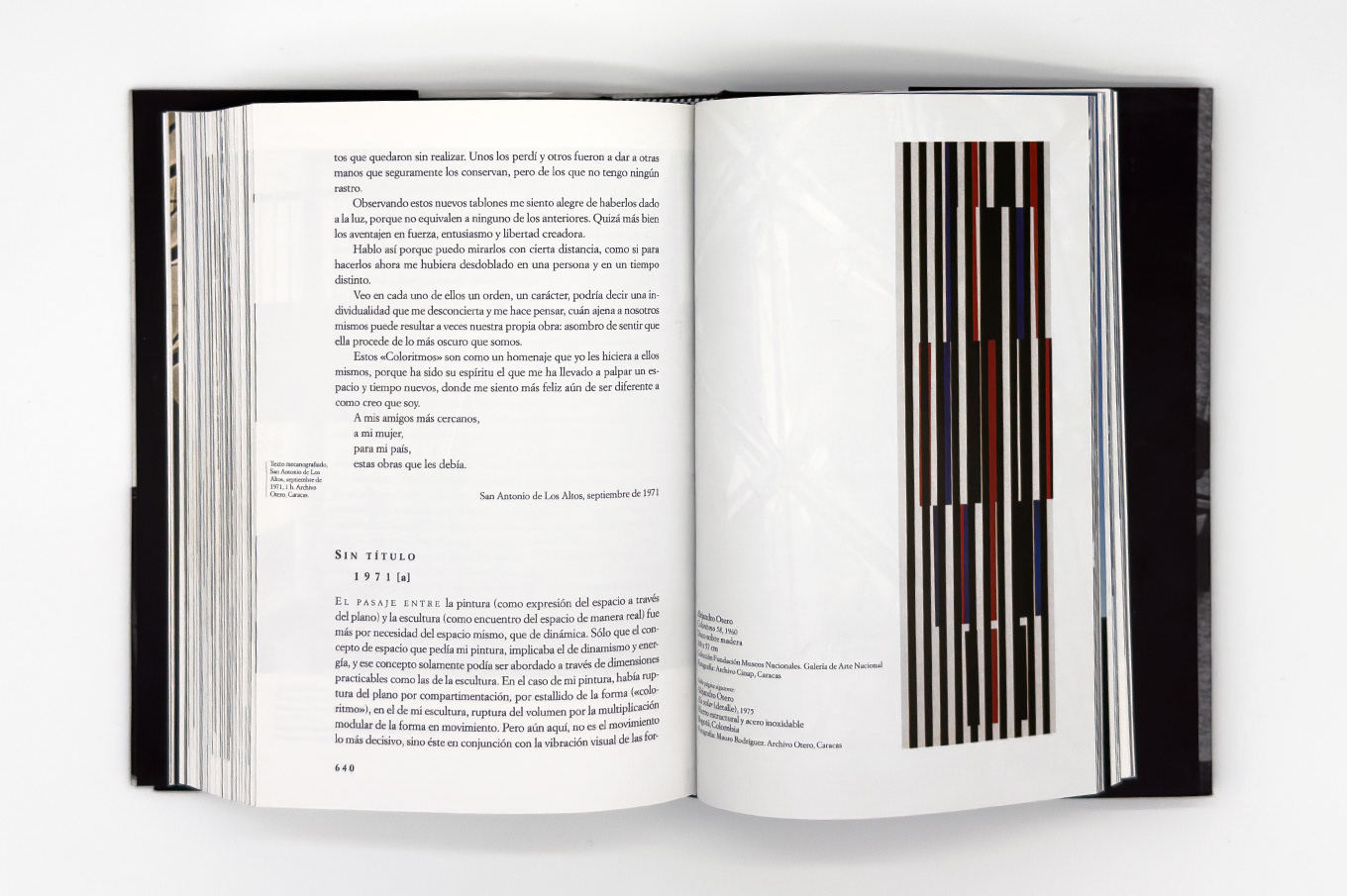 Memoria Crítica brings together press articles and letters that reflect Alejandro Otero's artistic ideas and those of his time, spanning from 1949 to 1990.